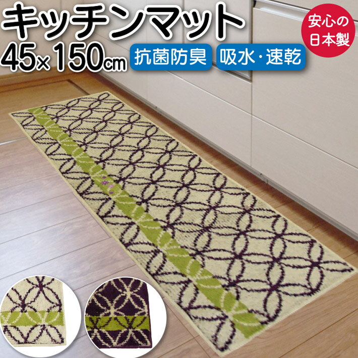 キッチンマット 150 150cm 45 台所 あいのや 七宝柄 45×150 日本製 抗菌 防臭 速乾 吸水 送料無料 室内 屋内 おしゃれ 滑り止め付き 清潔 パープル 紫