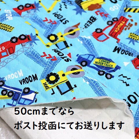 【キルティング生地】キルティング 車 働く車 男の子 ダンプカー あさいブルー 薄いスカイブルー Q-332 男の子 入園入学 レッスンバック ズック袋 お布団入れ トートバック かっこいい キルト生地 キルティング生地 キルト 生地