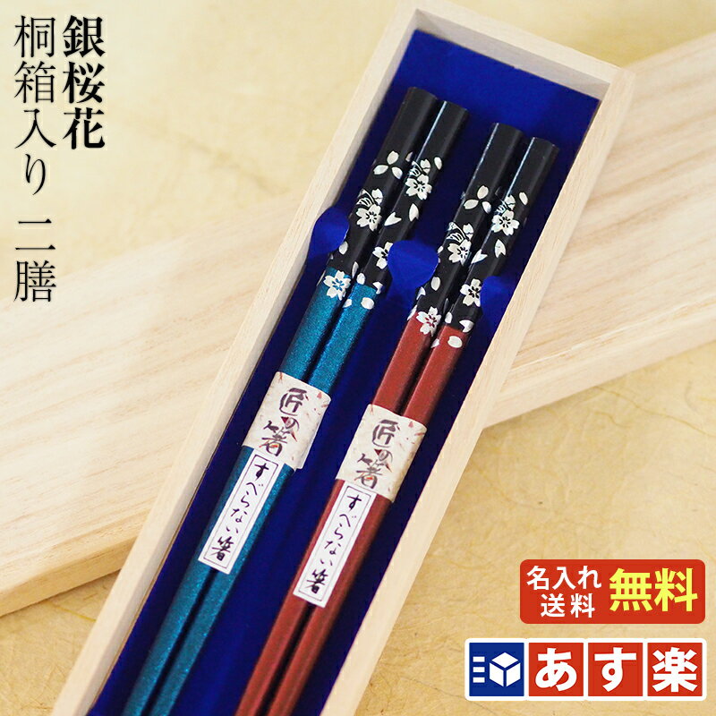 【あす楽対応】桐箱入り 夫婦箸 二膳セット『銀桜花』 お箸/名入れ/名前入り/結婚祝い/結婚記念日/ペア/セット/両親/金婚式/銀婚式/ギフト/プレゼント/贈り物/内祝い/還暦祝い ペア カップル/敬老の日