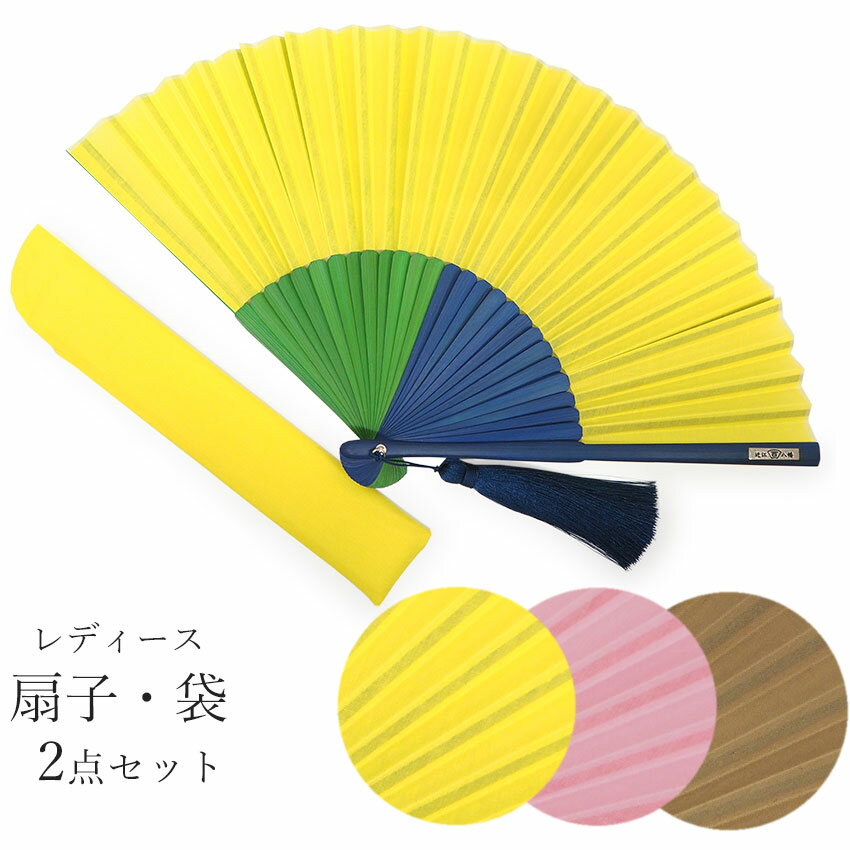 扇子 扇子袋 2点セット 西川庄六商店 マルチカラー イエロー ピンク ベージュ ネイビー グリーン ブルー レッド オレンジ 綿 ポリエステル エコ ギフト プレゼント 贈り物 春 夏 母の日 女性 せんす 和装小物 雑貨 暑さ対策 節電 エコ あす楽 ネコポス