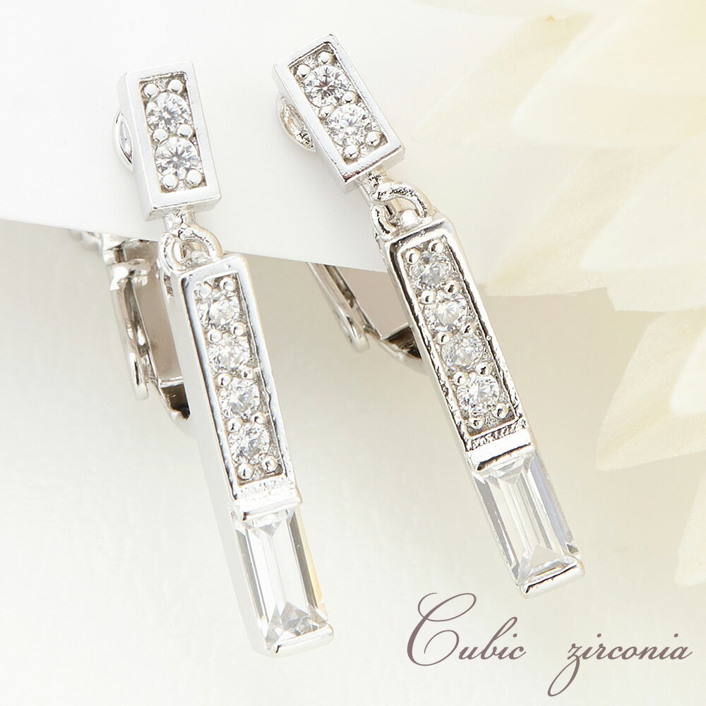 イヤリング レディース キュービックジルコニアバーが揺れるネジ式 シルバー メタル 大人かわいい シンプル キレイ系 カジュアル プレゼント用にも ギフト メール便 送料無料 春夏秋冬 大人気 あす楽