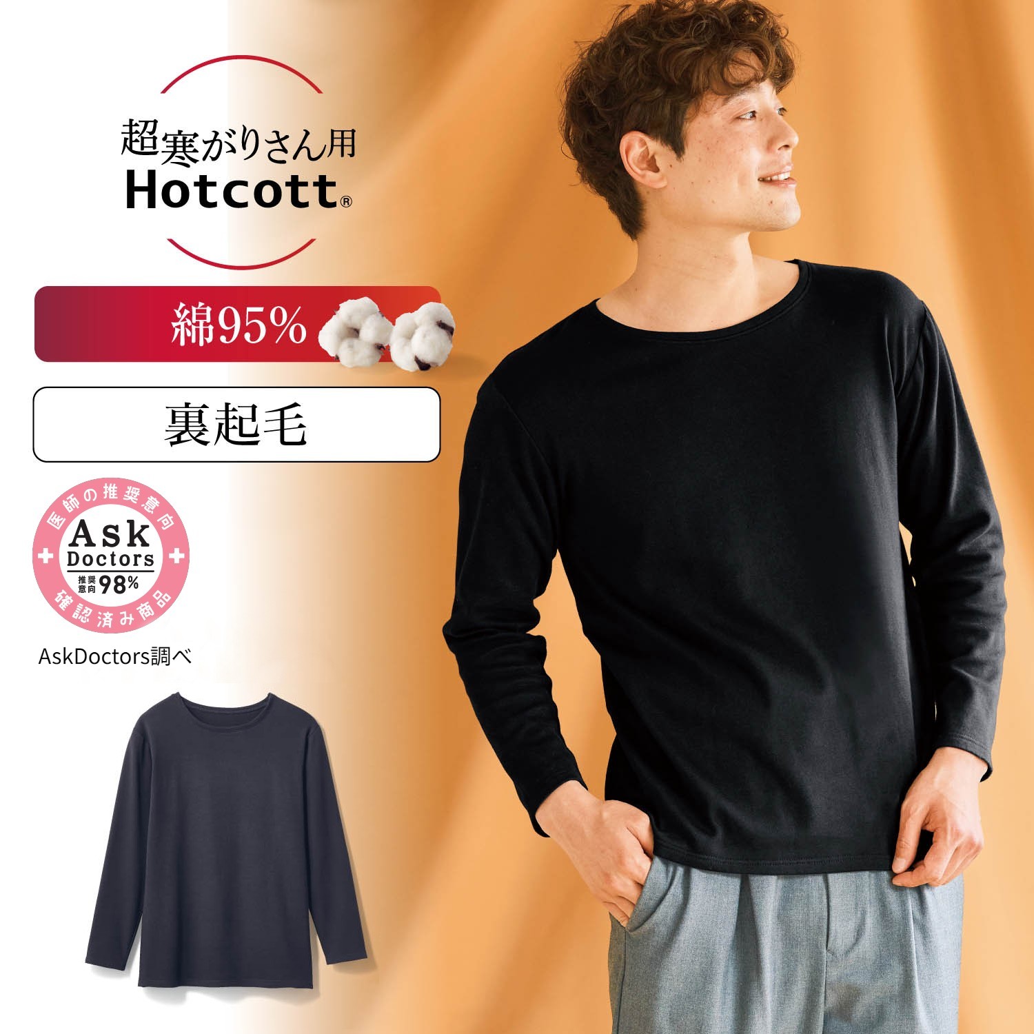 ブラックチャコールオフホワイト —デザイン・スタイリング— ・寒くてインナーを何枚も重ね着してしまう、という超寒がりさんにおすすめ ・身体のラインを拾いすぎないシルエットで、カットソー感覚で着られる ・アウターの襟もとから見えてもサマになるネックデザイン —素材— ・ホットコットの発熱機能に裏起毛が合わさったハイブリットな生地 ・ふっくらとした肉厚の生地が空気を含んでさらに保湿性アップ ・シリーズ史上最強にあたたかい着心地 ◆Hotcott(ホットコット)お客様のお悩みや暮らしに寄り添って開発した、 ベルメゾンオリジナルの綿混あったかインナーシリーズ。 着た瞬間から暖かいのはもちろん、綿の優しい肌触りでかゆくなりにくく、 乾燥から肌を守ってくれるなど、 こだわりの詰まったアイテムを多数取り揃えています。 医師100名の98%がホットコットを勧めたいと評価しました。 ※AskDoctors調べ※資料と素材(綿100%ホットコットの布片)を提示の上、デザイン・価格などを除き、商品の機能のみを判断基準に評価いただいています。「ホットコット(Hotcottを含む)」は、株式会社千趣会の登録商標です。 (S)胸囲(80〜88)肩幅36.5、、袖丈55.5、身丈68cm (M)胸囲(88〜96)、肩幅38.5、袖丈56.5、身丈70cm (L)胸囲(96〜104)、肩幅40.5、袖丈57.5、身丈72cm (LL)胸囲(104〜112)、肩幅42.5、袖丈58.5、身丈74cm (3L)胸囲(108〜116)、肩幅44.5、袖丈59.5、身丈76cm ●綿95%、ポリウレタン5%(裏起毛)●吸湿発熱機能●中国製 ※こちらの商品は肌側起毛素材のため、縫い付けラベルによる表示を使用しております。 当店では商品の在庫を複数店舗で共有しているため、予定しているセールの開始前に 売切れが発生し販売開始後も「売切れ」表示の場合がございます。 あらかじめご了承くださいますよう、よろしくお願いいたします。