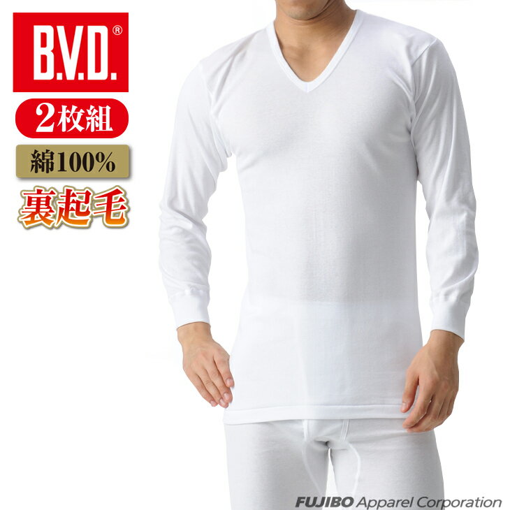 【10%OFFクーポン配布】【期間限定20%OFFセール】BVD あったかインナー 裏起毛 2枚組 V首長袖Tシャツ セット 綿100% フライス編み 防寒 保湿 綿 男性 下着 肌着 メンズ Vネック ロング ビジネス スノボードey602