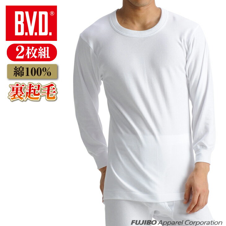 【10%OFFクーポン配布】【期間限定20%OFFセール】BVD あったかインナー 裏起毛 2枚組 丸首長袖Tシャツ セット綿100% フライス編み 防寒 保湿 綿 男性 下着 メンズ ロング ビジネス スノボードey607