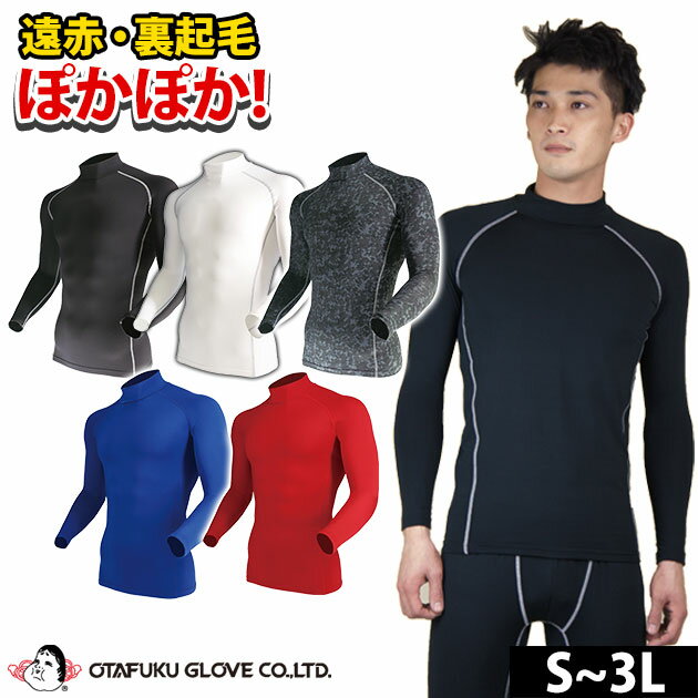 作業着 作業服 防寒 インナー 冬 長袖 吸汗速乾 メンズ ハイネック ヒートテック あったかインナー 防寒 ストレッチ コンプレッション裏起毛 遠赤外線加工 レイズド / おたふく BTパワーストレッチ ハイネックシャツ