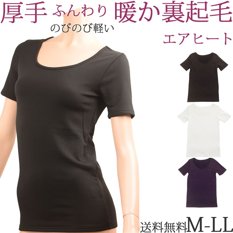 厚手 裏起毛 半袖インナー あったかインナー レディース 秋 冬 暖かい 防寒 3分袖 ロング丈 [M:1/1] 大きいサイズ LL M L 黒 白 透け防止 女性 下着 婦人 肌着 寒さ 冷え対策 部屋着 半袖tシャツ ストレッチ