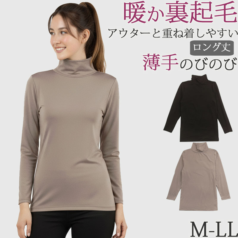 裏起毛 薄手 秋 冬 あったかインナー レディース ハイネック 長袖 暖かい 防寒 ヒート タートルネック ストレッチ ロング丈 8分袖 [M:1/1] 大きいサイズ LL M L 保温 黒 冷え おしり 長袖インナー 女性 下着 肌着 冷え対策 ladies inner