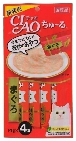 ※画像はイメージです。パッケージデザイン等は予告なしに変更されることがあります。※メーカーの欠品や製造中止により納期遅延、またはお届けできない場合がございます。いなばペットフード SC‐141 チャオちゅーるまぐろ&まぐろ節 14g×4本 発売日:2015年8月3日●ペーストタイプ。今までにない、液状のおやつ。【仕様】用途:キャットスナック原産国:日本原材料:まぐろ、まぐろ節、まぐろエキス、タンパク加水分解物、糖類(オリゴ糖等)、植物性油脂、増粘剤(加工でん粉)、ミネラル類、増粘多糖類、調味料(アミノ酸等)、ビタミンE、紅麹色素、緑茶エキス