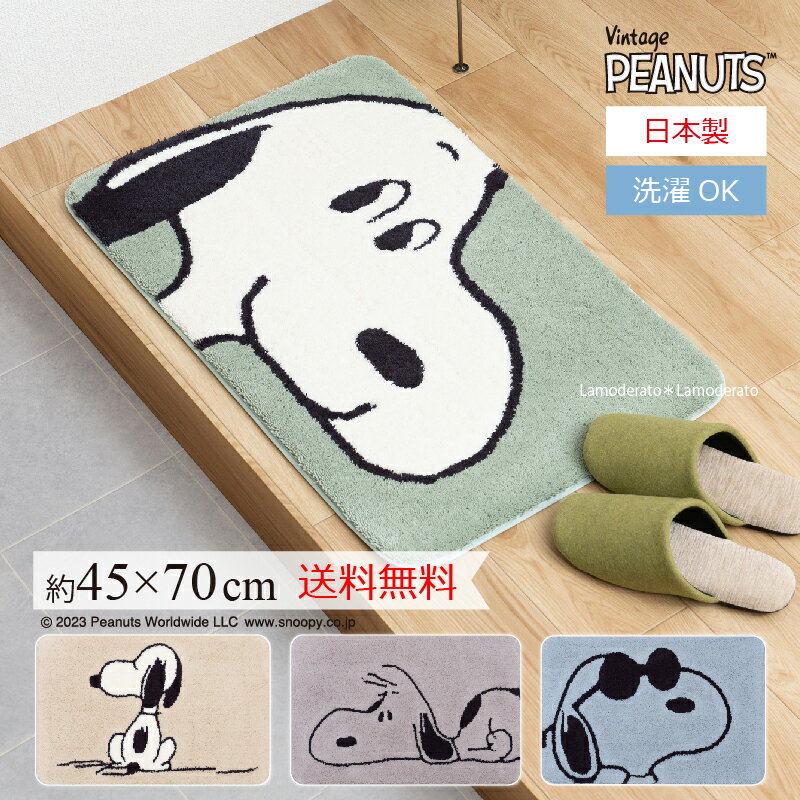 SNOOPY 洗える 玄関マット 日本製『おすわり フェイスアップ のんびり ジョークール』約45×70cm[ スヌーピー グッズ インテリアマット フックマット ベッドサイド ミニラグ オリジナル 北欧 おしゃれ 可愛い 室内] ベージュ グリーン グレー ブルー