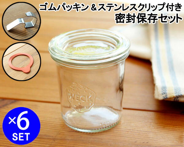 ウェック 密封保存セット デリカテッセン ガラスキャニスター 370ml 直径Mサイズ WE996 6個 & ゴムパッキン WE002 直径Mサイズ用 6個 & ステンレスクリップ WE004 12個 WECK【ウェック瓶 保存瓶 耐熱 電子レンジ対応 おしゃれ】【キッチン用品】