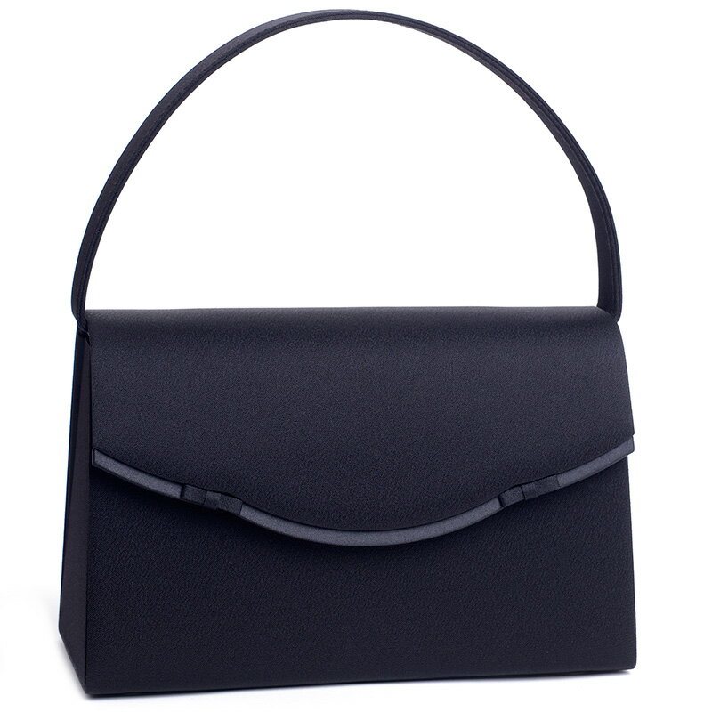 丸みを帯びたフォルムが優しい印象を与えます。カブセの全周にグログランの縁を付け、さらにアシンメトリーにすることで、立体感のあるデザインになっています。 ●All Made in Japan● F1シリーズはフォーマルバッグ専門の国内工場で、芯材・生地・金具類に至るまですべて日本製にこだわって仕立てたフォーマルバッグです。 キーワード→「F1」 ●撥水加工● 本商品は本体生地に撥水加工を施しております。防水とまではいきませんが、多少の雨粒程度でしたらはじきますので、雨のブラックフォーマルの場面でも安心です。なお撥水性能はカケンテストセンターで正式な試験を行い、一定水準以上の結果を得られたものを撥水と表記しております。 ●熟練の職人によるハンドメイド● フォーマルバッグ製作一筋の職人が、伝統的な「貼り合わせ」の技法を用い、一品一品丹念に手作りしています。フォーマルバッグは、基本的に芯地に生地を貼り合わせることで作られます。他のバッグとは異なる専門的な技能が求められます。 ●底鋲● F1シリーズ全品に日本製金具を使った底鋲が4カ所打たれています。置いたときに安定するようバランスが取られており、安心してお使いいただけます。 ●ガゼット● 側面のガゼット(折り込みマチ)がかなり深く取られており、バッグを開いたときに大きく開口するようになっています。 【サイズ】 幅最大約25cm 高さ約14.5cm(手持ち部分除くバック本体部分・全高は約26cm) マチ最大約9.5cm 内ポケット1カ所(深めのガゼットで意外と使えます) 【注意】別売り保管箱に適合するサイズがありません 【生産国】日本 Made in Japan 国産ハンドメイド 芯材・生地・金具類に至るまで、素材もすべて日本製を使用しております 【素材】表地:ポリエステル100%(はっ水加工済) 裏地:ポリエステル100% <ご利用シーン> 冠婚葬祭 お葬式 ブラックフォーマル お通夜 葬儀 結婚式 お呼ばれ 入園式 入学式 お受験 卒園式 卒業式 入試 面接