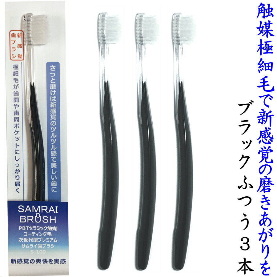 サムライ歯ブラシ ふつう ブラック3本セット 極細毛 が歯間や隙間にしっかり届く おしゃれ で使いやすい 大人の歯ブラシ 美白 虫歯予防 お水で磨ける ツルツルした歯と爽やかな磨きあがりが欲しいあなたに オススメ