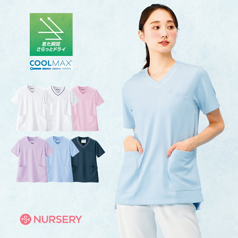 おすすめカテゴリ (1904)衿元のパイピングがおしゃれ♪不快な汗から解放してくれる超ドライウェアクールマックス(R)オールシーズン テクノロジーを使用して作られた生地は、暑い時には体から汗を吸い上げ素早く蒸散し涼しくドライな着心地を提供します。寒い時には繊維構造により暖かさを保ち、パフォーマンスを引き出します。 【メリット】・高い機能性を維持・お手入れが簡単・毛管作用により水分を吸い上げ蒸散・通気性・保温性(CLO値)に関する最低基準および保温性幅を満たす・生地安定性・繊維構造による優れた吸水速乾性・洗濯しても色落ちしにくいロングヒット中のやわらかジャージー素材「アクティブストレッチ」にCOOLMAX(R)fabricを採用しました。暑い時には体から汗を吸い上げ素早く蒸散し、涼しくドライな気心地が続くだけでなく、やわらかな風合いが感じられます。寒い日にも汗をそのままにせず、すぐに吸い取ることで、体を暖かく保つこともできます。オールシーズン快適が続くクールなウェアがここに!※クールマックス(R)ファブリック(COOLMAX(R)fabric)はThe LYCRA Companyの商標です。・着た瞬間さらっとドライ・後ろはヒップが隠れる長め丈・ナースリーオリジナル商品・再生系を50%以上含むエコ素材(エコホワイトのみ)【MDおすすめポイント】酷暑を乗り切るための秘密兵器!「人気素材」に超ドライなクールマックスを搭載暑い季節は涼しい顔をお約束?! 【ポイント】 前丈すっきり、ヒップはガード 再生系を50%以上含むエコ素材(エコホワイト) ※エコホワイトは従来のホワイトよりやや白度が下がります。 【機能説明】※ウェア機能の仕様説明です。デザイン・素材は本品と異なります。【カラー】 素材 アクティブストレッチ・クール(ポリエステル100%) ポケット位置 前両脇、左胸 ○防透 ○ストレッチ ○形態安定 ○防シワ ○吸汗速乾 ○クールマックス ○右腰ループ ○UVカット(紫外線遮断率90%以上) ※長く機能を保つために、柔軟剤、塩素系漂白剤の使用はお控えください。 ●サイズ(cm/約) セットでおすすめのパンツはこちら▼【 アクティブストレッチクール イージーパンツ 】