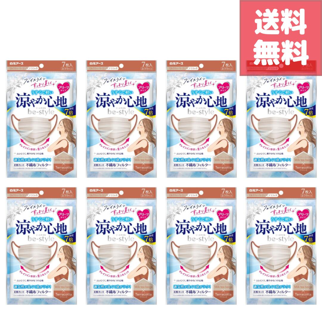ビースタイル プリーツタイプ 涼やか心地 ミルクティーベージュ×テラコッタ 7枚入×8個セット合計56枚 おしゃれなくすみ系バイカラー 小顔見えするプリーツ形状 通気性に優れた快適素材 化粧がつきにくく個包装で衛生的 通勤 お出かけにもぴったり 日用品サンプル付き