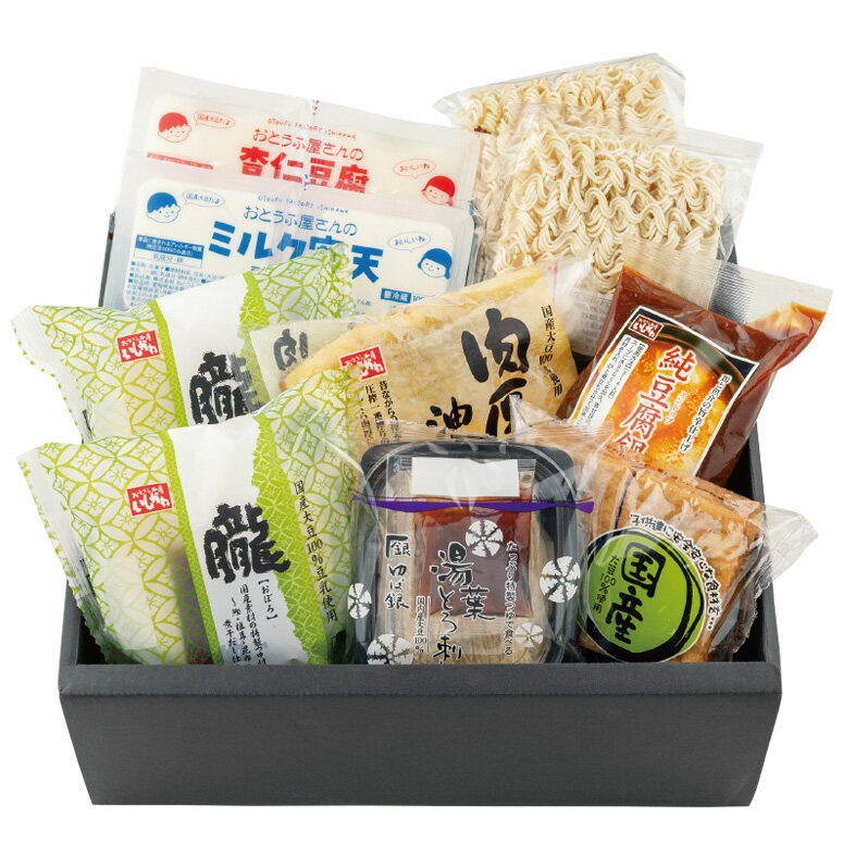 ※画像はイメージです。 商品概要 名称 甘辛純豆腐セット 商品説明韓国で人気の豆腐チゲ。鶏と魚介出汁がベースのスープは、辛味が強くないマイルドな味わいでお子さまも楽しめます。【お召し上がりのポイント】 お好みでにんにくのみじん切りを一緒に入れると香りがたちます。その後に純豆腐スープを加えて具材を入れます。辛さが物足りない時は、市販のキムチを入れても美味しく召し上がれます。反対に、仕上げに卵黄を加えれば、よりマイルドな味わいになります。シメに麺を入れてお楽しみください。 内容量 朧 充てん300g×2、純豆腐スープの素360g、肉厚油揚げ、湯葉とろ刺し(タレ付)75g、国産あつあげ2枚、豆乳入り即席めん80g×2、ミルク寒天100g×2、杏仁豆腐100g×2 消費・賞味期限 発送日+4日 原材料【朧充てん】豆腐:大豆(国産)(遺伝子組換えでない)、植物油脂、イソマルトオリゴ糖シラップ、食塩/凝固剤〔塩化マグネシウム含有物(にがり)、植物レシチン〕 タレ〔しょうゆ、砂糖、みりん、だし(鰹節、乾燥椎茸、昆布、煮干)、醸造酢、(一部に小麦を含む) 【純豆腐スープの素】チキンブイヨン(鶏ガラ、玉ねぎ、人参)(国内製造)、醤油、みそ、チキンエキス、食用油脂、果糖ぶどう糖液糖、ビーフエキス、りんごパルプ、砂糖、食塩、香辛料、豆板醤、アサリエキス、ラー油、しょうが、にんにく、ごま/酒精、増粘剤(加工でん粉、キサンタン)、調味料(アミノ酸等)、着色料(紅麹、パプリカ色素)、(一部に小麦を含む) 【肉厚油揚げ】大豆(国産)(遺伝子組み換えでない)、植物油/凝固剤(塩化マグネシウム含有物(にがり)) 【湯葉とろ刺し】湯葉[大豆(国産)(遺伝子組換えでない)]、つゆ[しょうゆ、砂糖、みりん、酢、だし(鰹、椎茸、昆布、煮干)(原材料の一部に大豆、小麦を含む)] 【国産あつあげ】大豆(国産)(遺伝子組換えでない)、植物油/凝固剤〔塩化マグネシウム含有物(にがり)〕 【豆乳入り即席めん】小麦粉(国産小麦100%)植物油脂(パーム油)、豆乳(国産大豆100%)、米粉(国産米100%)、食塩/かんすい 【ミルク寒天】豆乳〔大豆(国産)〕、牛乳、ビートグラニュー糖、乳頭を主要原料とする食品、でん粉、寒天、(一部に乳成分・卵を含む) 【杏仁豆腐】ビートグラニュー糖〔てん菜(国産)〕、豆乳〔大豆(国産)〕、牛乳、乳等を主要原料とする食品、杏仁霜/ゲル化剤(増粘多糖類)、香料、(一部に乳成分・卵を含む) 配送方法冷蔵便でお届けします 保存方法要冷蔵10℃以下 販売者株式会社 おとうふ工房いしかわ