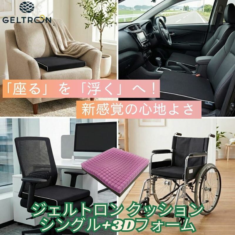 【自力での座位変換、座り直しが可能な方向け。軽~中度の床ずれ対策】 厚さ3cmのジェルトロンと、お尻の形状に合わせた 高密度3Dフォームを組み合わせたクッションです。 前後のずれを軽減し、お尻のフィット感・安定性を高めます。 ジェルトロンと高密度3Dフォームは分離可能。カバー・中身 ともに水洗いができるので衛生的です。カバー底面には すべり止め加工が施されています。 圧力吸収:座骨の局部圧を軽減 ジェルトロンが骨突出部分にかかる局部的圧力を吸収し、臀部全体をバランスよく支え、しびれや痛み、不快感を軽減します。 ずれ吸収:前ずれも横ずれも吸収 ジェルトロンは斜め方向の荷重も吸収し、仙骨座り等姿勢の崩れを防ぎます。 高通気:蒸れずに快適 ジェルトロンは立体格子内に空気層を多く含み、使用することで(着座を繰返すことで)空気の入れ替えを行います(エアーポンピング作用)。汗による蒸れ等を無くし気持ちよくお使いいただけます。 振動吸収:衝撃・振動を吸収して快適 ジェルトロンは衝撃・振動吸収性に優れ、車椅子走行中のずれや衝撃、振動による体への負担を軽減します。 水洗いOK:洗えて衛生的 ジェルトロンクッションは本体・カバーとも洗っていただくことができ、衛生的にご使用いただけます。 -仕様・規格- 商品名:ジェルトロン クッション・シングル+3Dフォーム サイズ:38×38×6.5cm(38タイプ)42x38x6.5cm (42タイプ) 重量 :1.5kg (38タイプ) 1.7kg(42タイプ) カバー:ポリエステル100% (裏面すべり止め加工) 中身 :ジェルトロン 備考 :介護保険適用福祉用具/車椅子付属品 【保証に関しまして】 正常な使用状態(一般用途)*において商品に製造工程あるいは素材に起因する欠陥が発生した場合は当ショップによる確認の後、対象部位に応じた保証期間内であれば無償で修理または交換いたします。 *製品を1日12時間以上ご使用になる場合は"一般用途"の定義外となります。 【保証対象商品:ジェルトロン クッション・シングル+3Dフォームタイプ(本製品)】 ◆ 保証対象部位:ジェルトロン本体(本製品内部クッション材) ◇ 保 証 期 間 :ご購入日より3年 ◇ 保 証 対 象 :ジェルトロン本体(本製品内部クッション材)に1cm以上の明瞭な凹が生じた場合。 ◆ 保証対象部位:上記ジェルトロン本体以外の素材(カバー、ウレタン、不織布、接着部分,他) ◇ 保 証 期 間 :ご購入日より1年 ◇ 保 証 対 象 :製造工程あるいは素材に起因する欠陥が生じた場合。 【保証対象外事項】 以下に該当する場合、保証対象外となります。 ■ ご購入日が確認できる当ショップ発行のお買上明細書の提示がない場合(システム上720日以上の各種データ保存がショップ側ではできない為、お買上明細書の提示が必須となります。お買上明細書の原本を必ず保管して下さい)。 ■ お客様または第三者の不注意や過失によって破損した場合。 ■ 当製品を故意に破損させた場合、または通常の使用方法とは異なる不適切な使用により破損した場合。 ■ 当製品を長時間にわたり曲げる、折る、吊り下げる、高温の環境に置くことによってジェル部分が変形、割れ、破損した場合。 ■ 当製品が変色している場合。 ■ 当製品が直射日光の当たる環境で保管され、変色や軟化している場合。 ■ 当製品にカビ、シミ、汚れ,等がひどく付着するなど、非衛生的な取り扱いをされていた場合。 ■ カバーに擦り傷、切り傷、破れ、穴開き、ファスナー破損等が生じた場合。 ■ お客様または第三者により改造や修理が行われている場合。 ■ 火災・天災・地変によって破損した場合。 ☆彡当該商品を交換する場合は同一商品の代替品を提供いたしますが、当該商品の仕様変更や生産終了により同一の商品を提供できない場合、当該商品と同等機能の商品と交換いたします。また、お手元の商品を当方宛て返送の際の運賃はご負担頂きますので、予めご了承下さい☆彡 ■エクストリームリミットは「ジェルトロン製品」の正規取り扱い店です■■優れた体圧分散性とずれ吸収力で臀部への負担、姿勢の崩れを減らします。 長時間のデスクワーク、車の運転など、座る時間の長い場所でのご使用にお勧めです。 さらに振動吸収性に優れているので、振動による腰への負担を軽減します■ 圧力吸収:座骨の局部圧を軽減 ジェルトロンが骨突出部分にかかる局部的圧力を吸収し、臀部全体をバランスよく支え、 しびれや痛み、不快感を軽減します。 ずれ吸収:前ずれも横ずれも吸収 ジェルトロンは斜め方向の荷重も吸収し、仙骨座り等姿勢の崩れを防ぎます。 高通気:蒸れずに快適 ジェルトロンは立体格子内に空気層を多く含み、使用することで(着座を繰返すことで) 空気の入れ替えを行います(エアーポンピング作用)。汗による蒸れ等を無くし気持ち 良くお使いいただけます。 振動吸収:衝撃・振動を吸収して快適 ジェルトロンは衝撃・振動吸収性に優れ、走行中・移動中のずれ、衝撃、振動による体 への負担を軽減します。 2way仕様:気分に応じて選べるクッショ