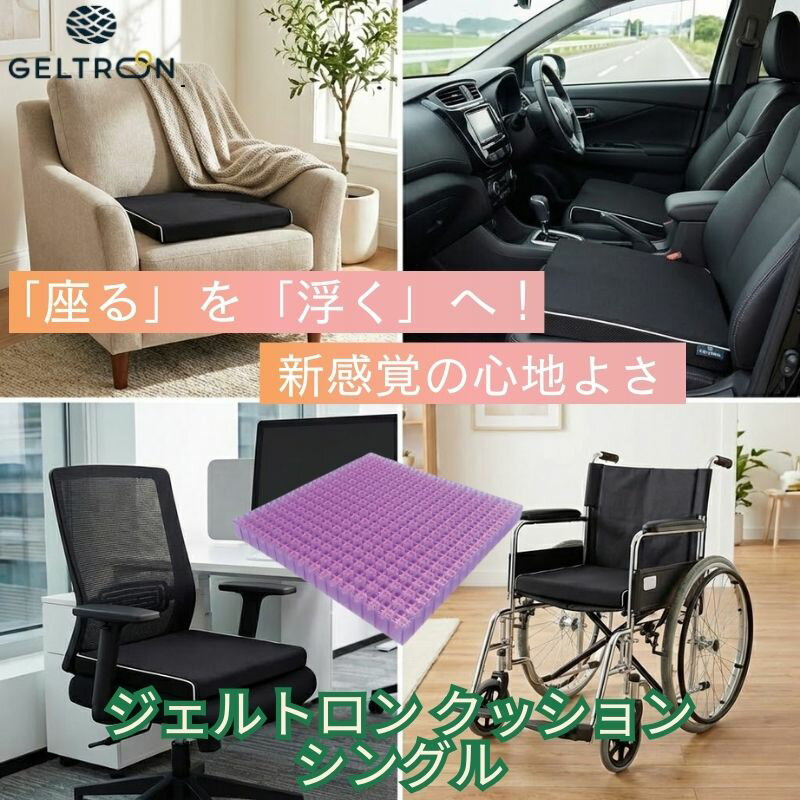【スーパーDEAL】 安心3年保証 ジェルトロン クッション ゲル シングル お尻が痛くない 洗える 座布団 腰痛 腰 対策 車 車椅子 長時間 運転 後部座席 デスクワーク 疲労 負担 振動 軽減 姿勢 矯正 骨盤 疲れない お尻 痛み 介護 床ずれ 痔 高通気 蒸れない