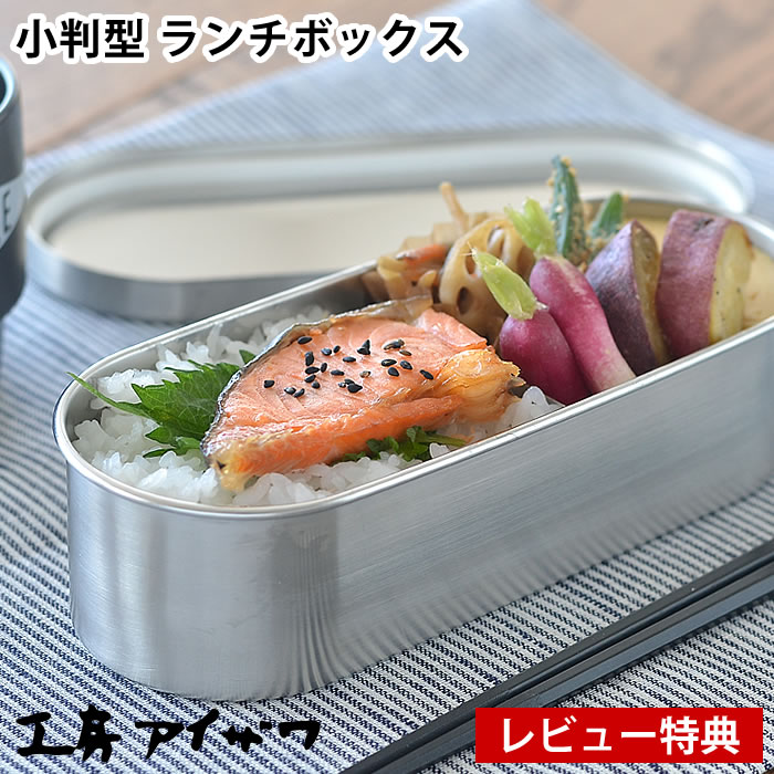 商品名小判型ランチボックス商品詳細サイズ本体サイズ:約 W197×D82×H60mmバンド含むサイズ:約 W197×D85×H63mm容量約570ml素材本体・仕切り:18-8ステンレス鋼(クロム18%・ニッケル8%)パッキン:シリコンゴムバンド:ゴム原産国日本備考■食品が熱い時は冷ましてからフタをしてください。温度差でフタが開かなくなる事があります。■普段のお手入れは洗剤を付けたスポンジ等で洗ってください。スチールタワシや磨き粉等のご使用は傷を付けますので避けてください。■強度の酸性食品の使用・保存は避けてください。腐食の原因になります。■縁まで水等を満たした状態で使用しないでください。■長時間料理を保存しないでください。■パッキン及び本体口元を傷つけないようにしてください。密閉性が低下します。■完全密閉ではありませんので水分の多いモノを入れると汁もれすることがあります。■パッキンを洗う時、引き伸ばす様な洗い方はしないでください。パッキンが伸び、セットが出来なくなります。■パッキンは定期的に洗ってください。煮沸消毒もできます。洗った後は正しくセットしてください。■洗った後、すぐにフタをしないでよく乾燥させてください。■電子レンジでは使用しないでください。■ご使用後は、アルミ製のホイルケース等は、入れたままにせず取り出してください。変色やサビの原因になります。検索キーワード 弁当箱 ステンレス 工房アイザワ 小判型ランチボックス 1段 女子 大人 子供 容量570ml 日本製 燕三条 シンプル おしゃれ 女性 男子 学生 ベルト付 仕切り付 保存容器 食品保存 フードボックス UTILE lunch-box 70485 レトロ かわいい 清潔 丈夫 頑丈 18-8ステンレス 国産 燕三条 子供 学生 スリム コンパクト 小さい 少食ラッピングラッピングOK→詳細はこちら小判型ランチボックス食べすぎを防げるサイズ感小判型でコンパクトな570mlのステンレスお弁当箱工房アイザワのお弁当箱は、SNSでも沢山の投稿を目にするけれど、どれも本当に美味しそうに見えます。ステンレスで作られた無骨でシンプルisベストなお弁当箱だから、主役の食材達の色彩を邪魔せず、むしろ引き立たせて見せてくれるのです。素朴なメニューはしっくりしみじみと、スタミナ満点のメニューはボリューム感を感じるように、それぞれが魅力いっぱいに見えるから不思議です。18-8ステンレス鋼を使用しているので、いつも綺麗に洗浄でき、腐食にも強いので長く愛用できます。工房アイザワのお弁当箱は沢山のサイズ・バリエーションをご用意しています。ぜひ、あれこれと見比べていただき、ベストなお弁当箱を見つけてみてください。交換用パーツもご一緒にいかがですか?ランチボックスパッキン 小判用ランチボックス仕切り 小判用→シリーズ一覧を見る
