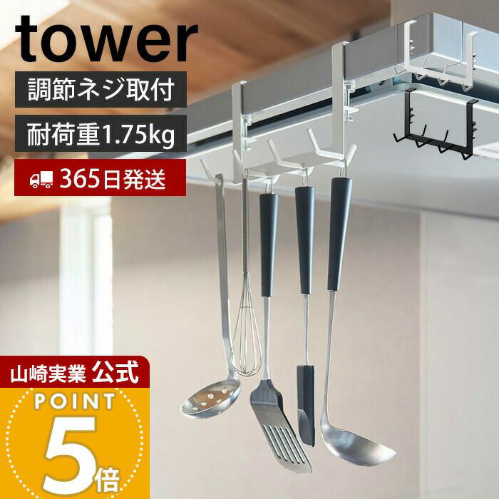 【365日出荷】山崎実業 レンジフード横フック タワー 7連 tower 公式 レンジフード 換気扇 スチール壁面 磁石 キッチンツール お玉 フライ返し 計量スプーン 引っ掛け収納 ホワイト ブラック 1787 1788