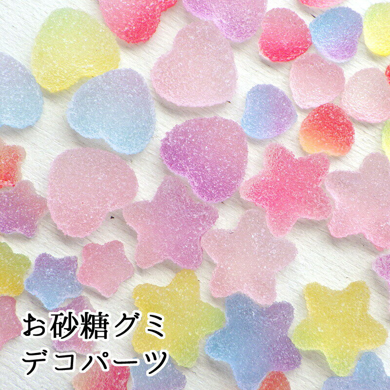 アクリル貼付けパーツ デコパーツ 砂糖菓子 グミ風貼り付けパーツ ハート スター 大 小(10個)ランダムカラー デコレーションパーツ