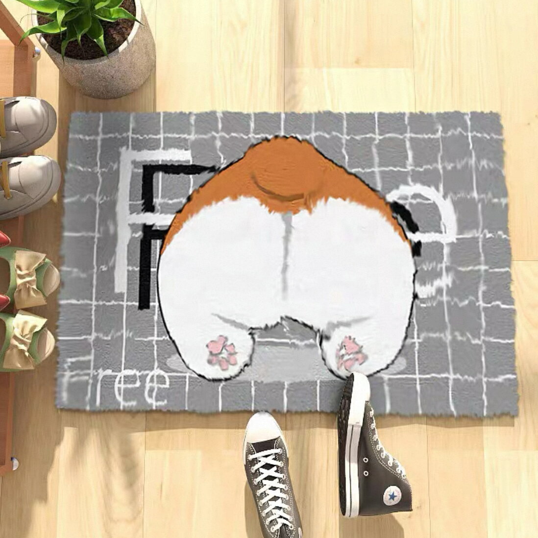 A019036ラグマット リビングマット.コーギー犬 玄関マットカーペット お風呂マット