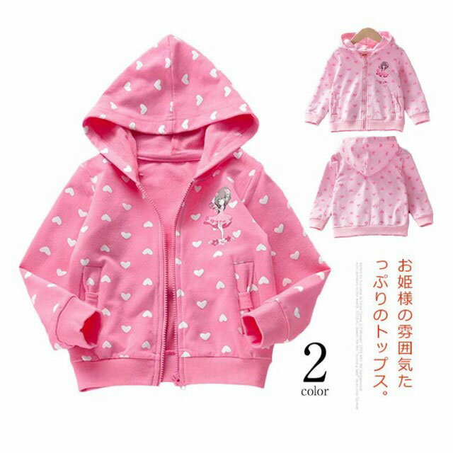 送料無料 パーカー キッズ トレーナー ジャケット ブルゾン 女の子 トップス 子供服 アウター ジップアップ ベビー フード付き ガールズ ジュニア ハート お姫様 可愛い 春秋 春 秋