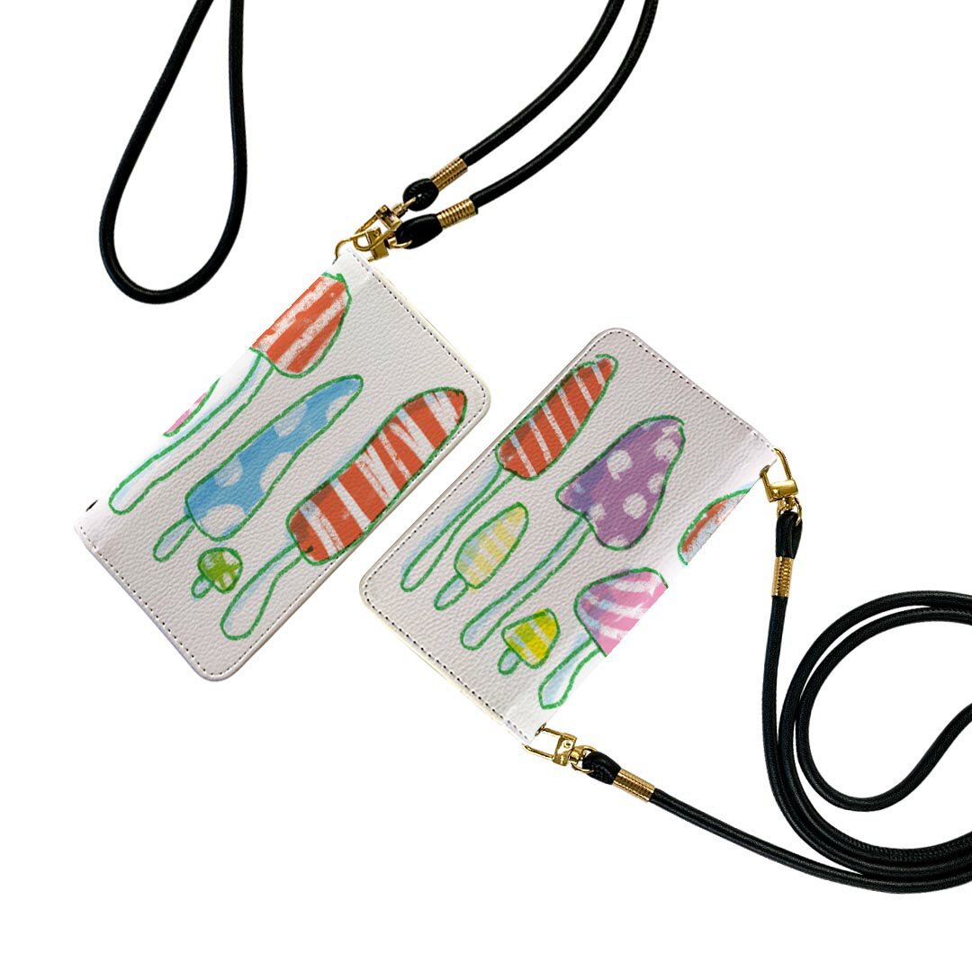 iPhone 16e 用 各キャリア 共通対応 iphone 16e 手帳型ケース ケース ストラップ付き ショルダー スマホ 落下防止 手帳型 マグネット式 ピタッと閉まる スマホカバー 肩掛け 斜めかけ 014808 きのこ 手描き カラフル