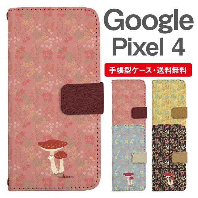 スマホケース 手帳型 Google Pixel4 スマホ カバー グーグル ピクセル おしゃれ グーグル ピクセルケース Google Pixel4ケース きのこ 花柄 フラワー