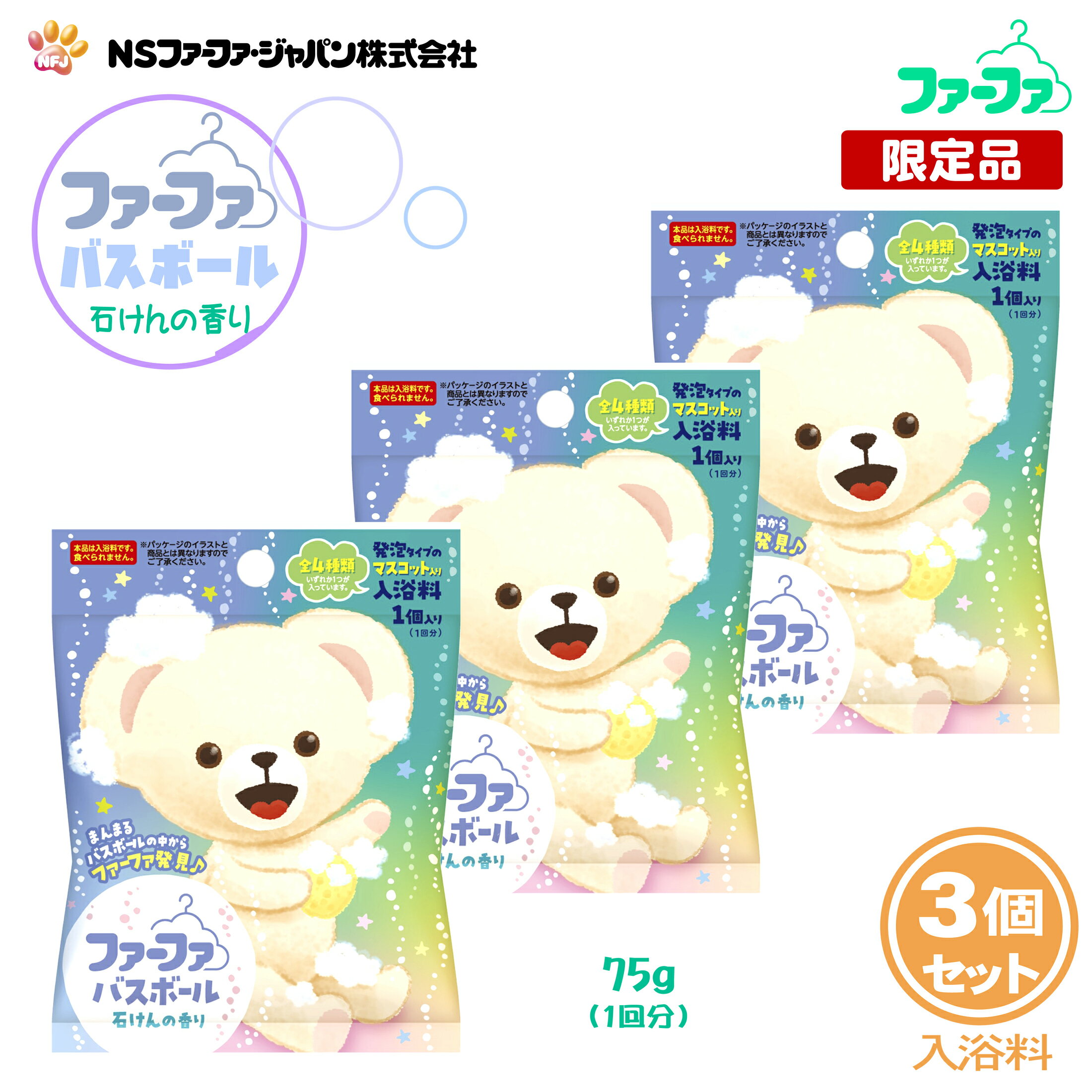 【数量限定】ファーファ(FaFa) マスコット入り バスボール 1個入り(1回分)×3個セット 石けんの香り 発泡タイプ入浴剤(バスボム)【送料込】