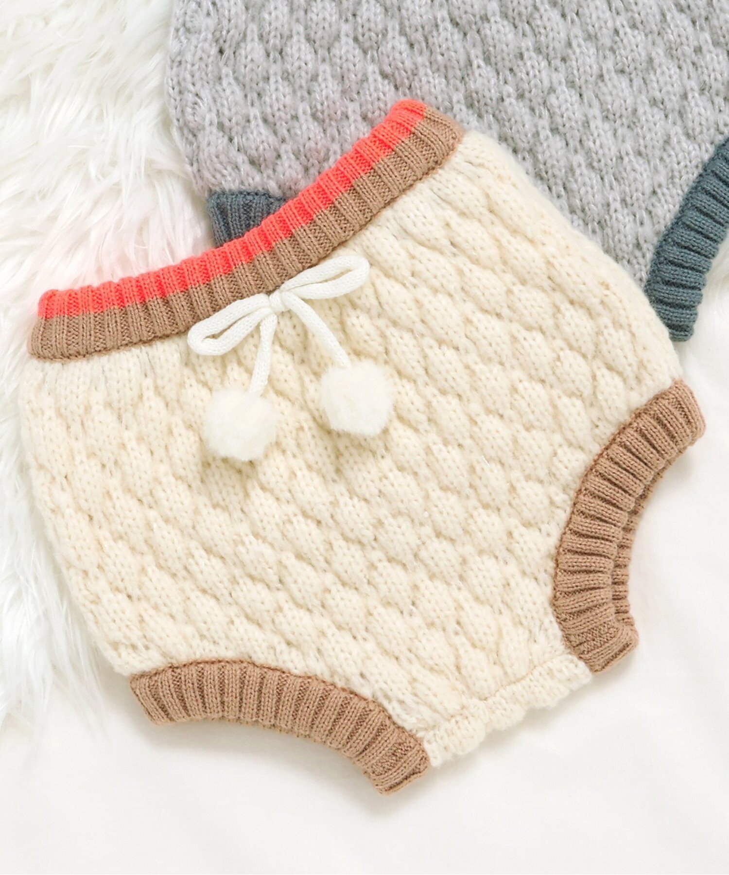 BREEZE FUN!FAN!ANIMAL ぽこぽこニットブルマ エフオーオンラインストア マタニティウェア・ベビー用品 その他のベビーグッズ ホワイト グレー