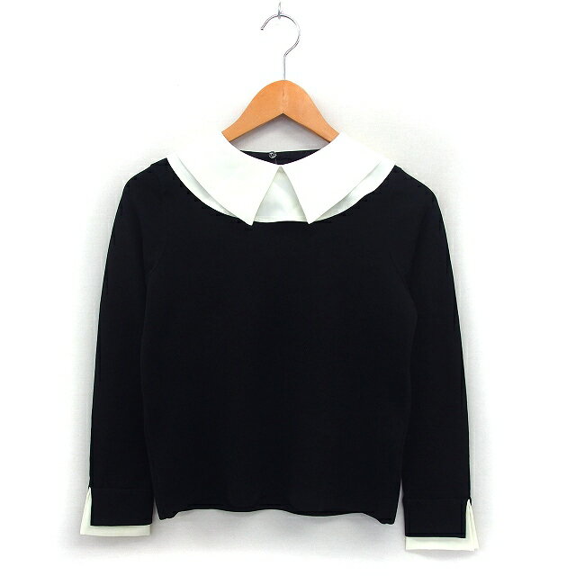 【中古】マーリエパーエフデ Maglie par ef-de ニット カットソー 付け襟 クルーネック リブ ハイゲージ 長袖 7 黒 ブラック /NT22 レディース 【ベクトル 古着】 250613