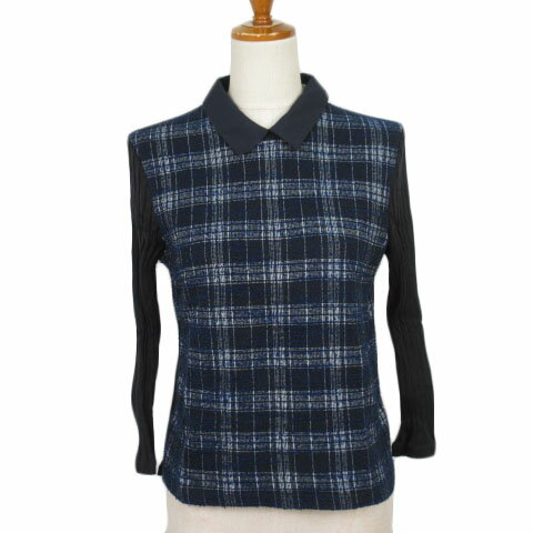 【中古】ニューヨーカー NEWYORKER カットソー チェック ネップ リブニット つけ襟 M 黒 ブラック 紺 ネイビー レディース 【ベクトル 古着】 201119 ベクトルプレミアム店