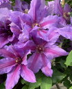とてもコンパクトで花付きの良い系統、レイモンド・エビソン社の品種 パープル地にローズのライン、進むと淡くなる。花後に切り戻すと繰り返し咲き、長い期間楽しめます 強健で育て易い品種。 新、旧の枝、主に5~6月にかけて花が咲きます。 花後は花から2、3節で切り戻すことによって 、繰り返し咲き、草姿も整います 植付け適期:9月半ば~10月と2月~3月が最適、または4月~7月に 花のつき方: 新旧両枝咲き 剪定:中~強い剪定タイプ ・花後の剪定:花首下2~3節で剪定 ・2月の剪定:短めに切れば低く咲き、30センチほど残せば誘引しやすい ●画像1、2枚目はイメージです。 葉も美しいのでグリーンカーテンにも利用できます。 ●画像1、2枚目はイメージです。 お届けする株は3枚目のような苗(9センチ深ポット)となります。 ◆冬は葉が無い状態となります。 春から葉が展開し生育し、初夏に開花します。 日当たり・置き場所 ポイント 日当たりをよく好み、日当たりの悪いところでは花つきも悪く株も丈夫に育ちませんので、じゅうぶんに日光に当てるようにしましょう。 逆に夏の直射日光には弱く、北向きの場所などに置くか、日除けを施し、風通しを良くしてできるだけ涼しくなるようにしましょう。 水やり・肥料 丈夫な植物ですが、どちらかというと乾燥を嫌いますので、土の表面が乾いたらたっぷりと与えるようにし、夏の暑い時期には特に水切れをおこさせないように注意しましょう。一度水切れをおこしてしまうと(葉や枝がふにゃふにゃになるまでほおっておくと)生育が著しく衰えてしまいます。 クレマチスは肥料食いの植物です。肥料は春から秋の生育期は十分に与えます。真夏は暑さで弱ることがあるので、いったんストップして秋に涼しくなってきたら再び与えます。液体肥料を2週間に1回与え、同時にゆっくり効く固形肥料を2ヶ月に1回施します。 用土 有機質に富み、なおかつ水もちのよい土が理想的です。地植えの場合で砂質の土壌の場合はバーミキュライトを混ぜ込んで水もちを良くするとよいでしょう。鉢植えの場合は、赤玉土5:腐葉土3:バーミキュライト2の割合で混ぜた土を使用しましょう。 植え替え・植え付け 鉢植えで鉢の中が根でいっぱいになってきたら植え替えの時期です。だいたい2年に1回は植え替えの必要がでてくると思います。植え替えするのは葉っぱが落ちた休眠期で、12月〜3月の間におこないます。生育期間中は植え傷みが激しくなるので、できれば避けた方がいいです かかりやすい病害虫 病気 うどんこ病 害虫 アブラムシ ナメクジ うどんこ病は湿度が低く、気温が高い時期に発生しやすい病気です。葉や茎が白い粉をはたいたようになります。発生する前に殺菌剤を散布して予防します。アブラムシは春から秋に発生し、新芽や茎、つぼみについて吸汁します。ナメクジは葉や花を食べてしまいます。 まとめ タイプにより剪定方法は異なる 酸性土壌を嫌う 鉢植えは真夏の直射日光を避ける10月頃まで鉢での管理がおすすめです。国内流通はほぼ無い希少品種。