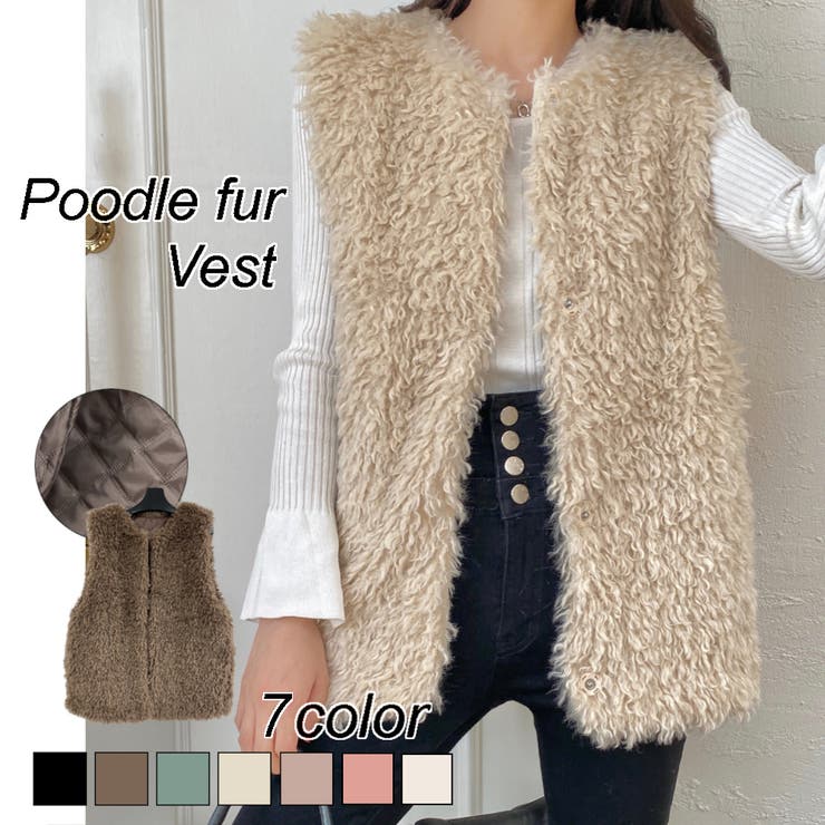 この秋マストで手に入れたいファーベストが登場!!やや毛足のあるプードルファーがふわふわとしたやさしい印象です◎アームホールを広めに設定しているので、レイヤードもしやすくファーアイテムでもモサッとしないシルエットにこだわりました。タートルネックやシャツとのレイヤードはもちろん、今年ならワンピースやジャケットと合わせての着用もおすすめです♪着丈:62cm 肩幅:36cm 身幅:49cmモデル身長:155cm着用サイズ:M伸縮性:なし裏地:あり生地の透け感:なし原産国:CHINA/ L52232003※撮影時のライティング、ご覧になっているモニター・PC環境により実際の商品と色味が異なって見える場合がございます。※サイズは全て平面置きで採寸したものです。商品の性質上、多少の個体差がございます。※輸送時や梱包による、多少のシワがある場合がございます。※ご了承の上お買い求め下さい。【是非ハートボタンを押してご登録下さい】▼商品のお気に入り登録・値下げや再入荷の通知が届きます。▼ブランドのお気に入り登録・新作入荷や値下げ情報、再入荷などが届いち早く届きます。アウター ジレ レイヤード 大人 カジュアル 韓国ファッション きれいめ オフィスカジュアル もこもこ ボア はおり 羽織 ノースリーブベスト 防寒 あったか シンプル 秋 冬返品・交換について購入後の交換は受け付けておりません。予めご了承ください。返品を希望される場合は購入履歴一覧の「ショップへの問い合わせ」よりお問い合わせください。=========================複数配送先指定について1件の注文に対して、異なる住所への配送は対応出来かねます。恐れ入りますが、異なる住所へ配送をご希望の場合、配送先毎に分けて注文いただきますようお願い申し上げます。【アウター(コート・ジャケットなど)WOMEN】アイボリー ブラック ピンク カーキ モカ ライトピンク オフホワイト グレー M 表地:ポリエステル100% 裏地:ポリエステル100%