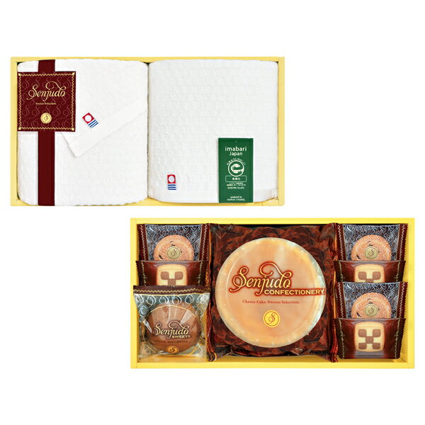 ギフト対応【送料無料】千寿堂自慢のスイーツと、環境にやさしい今治タオルのセット。しっとりしたチーズケーキやソフトケーキにクッキーなど、バリエーション豊かな味わいです。■商品名:千寿堂 スイーツ&今治タオルセット■セット内容:チーズケーキ直径約14cm・ソフトチョコケーキ・フェイスタオル(約34×75cm)・ウォッシュタオル(約34×35cm)各1、クッキー(チョコチップ・チェス各3)・タオル/日本製■材質:タオル/綿100%(無漂白)■賞味期間:常温で90日■加工地:ケーキ・クッキー/日本■箱:約34.5×19×10.5cm(化粧箱)■食品アレルギー:小麦・卵・乳※商品情報等が変更になる場合がございます。※ご注文・配送状況などにより、最短発送日を変更させて頂く場合がございます。結婚式 披露宴 結婚引出物 結婚引き出物 ご結婚内祝い ウェディング ギフト ブライダルギフト 引出物 引き出物 人気の引出物 人気の引き出物 出産祝い 結婚祝い 内祝い 内祝 出産内祝い 新築内祝い 快気祝い お返し 記念品 ごあいさつ 香典返し 満中陰志 のし無料 オリジナルカード 無料オリジナルカード フォトカード カタログ ギフト ギフトカタログ カタログ式ギフト チョイスギフト お買い得カタログ チョイスカタログ グルメカタログ カタログタイプギフト プレゼント