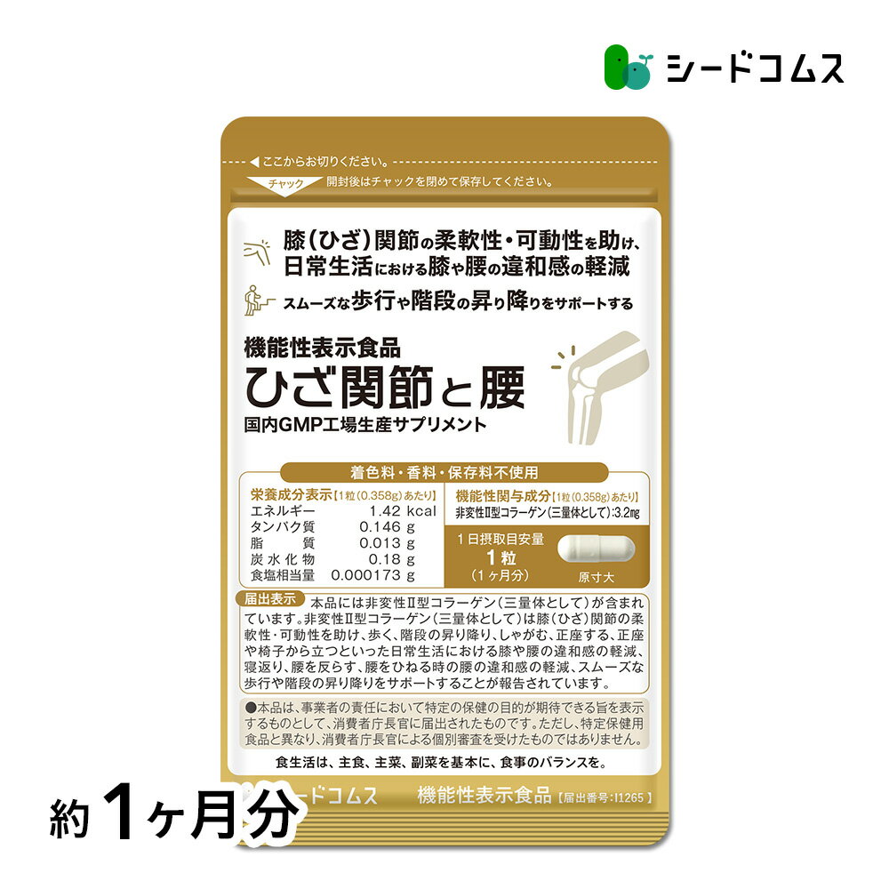 機能性表示食品 ひざ関節と腰 30粒入り 1ヵ月分 非変性二型コラーゲン グルコサミン プロテオグリカン サプリメント