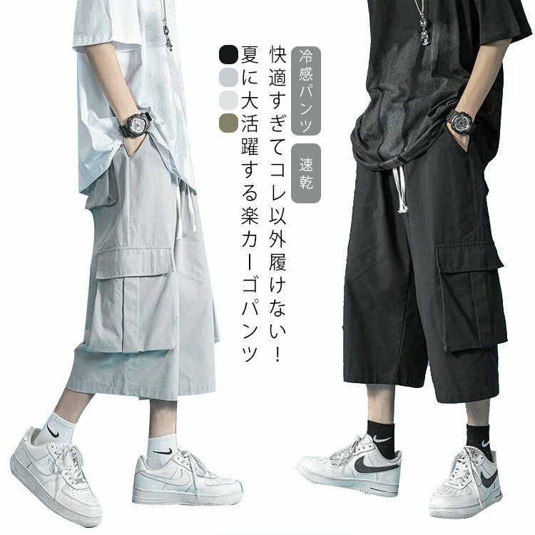 カーゴパンツ ミリタリーパンツ ひざ下 7分丈 メンズ パンツ スポーツパンツ スポーツウェア ストレッチ UVカット ゆったり 接触冷感 吸汗速乾 涼しい ボトムス 薄手 イージーパンツ 作業着 作業ズボン ズボン ゴルフ ランニング 冷感パンツ 速乾 ビジネス 送料無料
