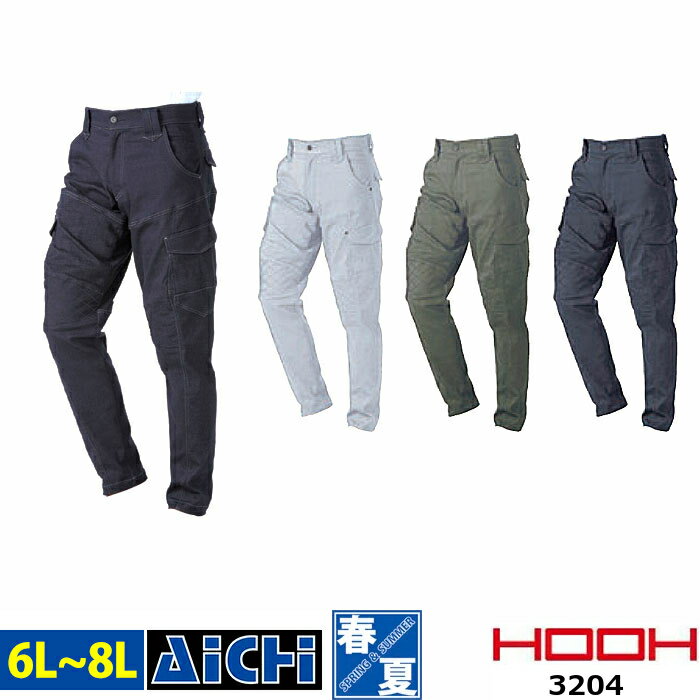HOOH 鳳皇 村上被服 作業服 3204 ストレッチ ジョッパー カーゴパンツ オールシーズン 6L 〜 8L | ひざ刺子補強 カジュアル 大きいサイズ インディゴ 紺 ネイビー シルバー グレー アーミー カーキ ブラック