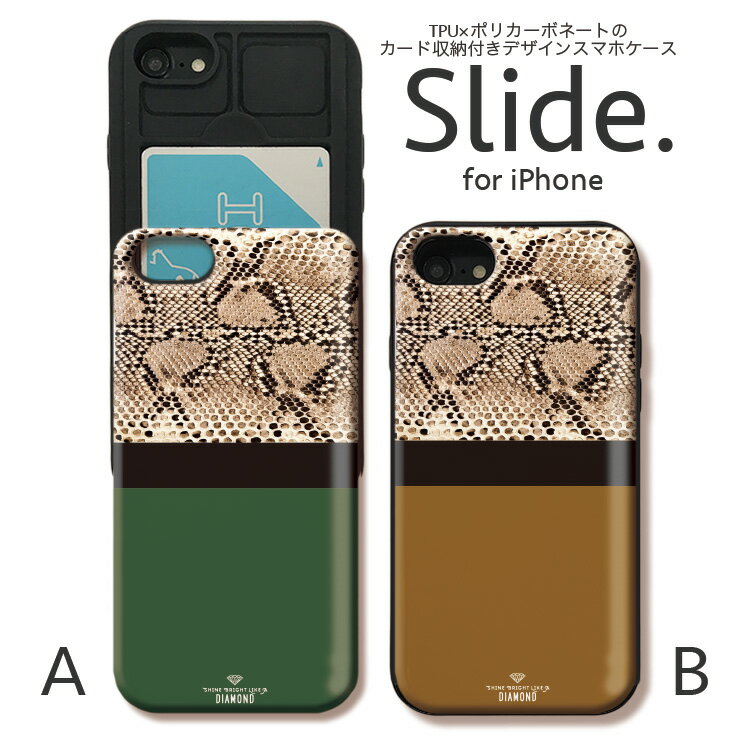 IPhone12 pro 背面 ICカード スライド収納 iPhoneSE 第2世代 SE2 iPhone11 Pro Max iPhoneXs XR iPhone8 7 GalaxyS9 ケース 耐衝撃 へび柄 python パイソン ヘビ 蛇 かっこいい diamond ダイヤモンド