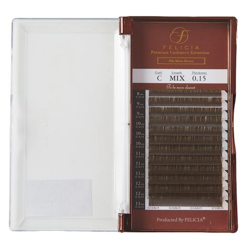FELICIA[ダークブラウン]フラットラッシュ極柔らかまつ毛エクステシングルマツエクアイラッシュCカール0.15太さ8-13mmミックス