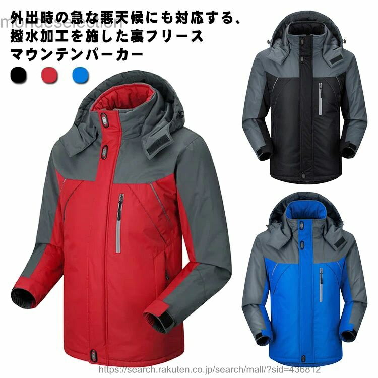 【送料無料】マウンテンパーカー メンズ ジャケット カジュアル 撥水 防寒 フード付き 防水 防風 裏フリース 裏起毛 コート アウトドア 秋服 アウター ウインドブレーカー ジャンパー