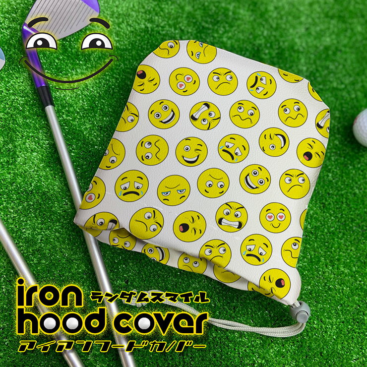 全面印刷 ランダムフェイスデザイン アイアンフードカバー ゴルフ 名入れ ゴルフカバー アイアン ゴルフアイアンフード ギフト プレゼント ラウンド用品 ゴルフ用品 フルオーダー プレゼント ギフト スマイル