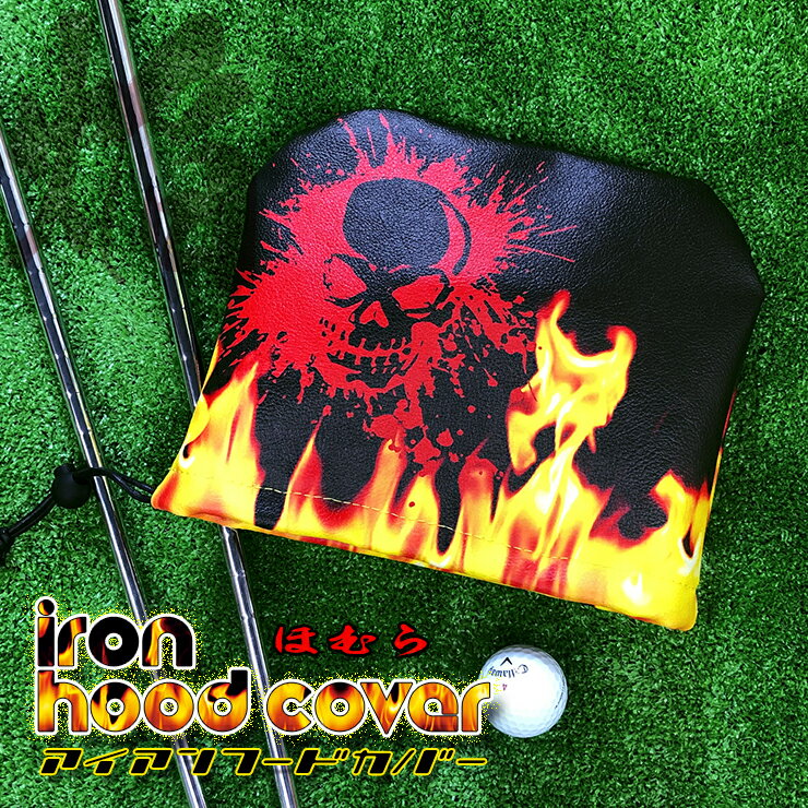 全面印刷 ほむらデザイン アイアンフードカバー ゴルフ ゴルフカバー アイアン ゴルフアイアンフード ギフト プレゼント ラウンド用品 ゴルフ用品 フルオーダー プレゼント ギフト 炎 焔 スカル ドクロ 髑髏