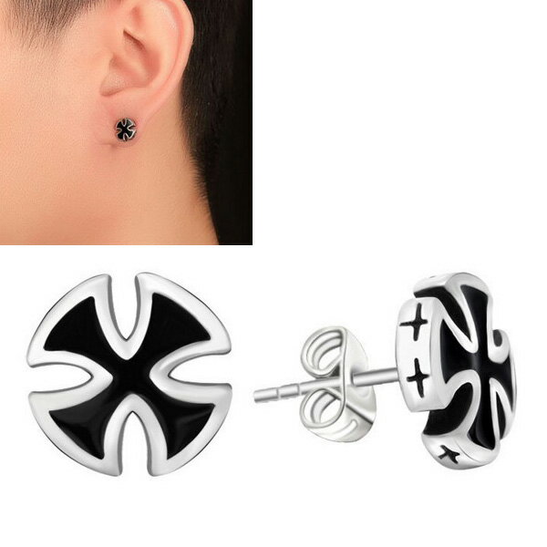 マルタクロススタッドピアス/1ペア アイアン十字架 20G 20ゲージ 両耳 シルバー925 スターリングシルバー シルバーピアス キャッチピアス メンズ レディース 高級 オリジナル 耳たぶ 軟骨