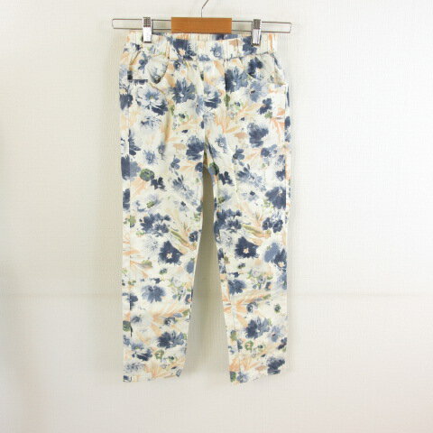 【中古】アイマサイエ Aima+saie クロップドパンツ サブリナ 花柄 ストレッチ オフホワイト 白 青 1 *T996 レディース 【ベクトル 古着】 240708