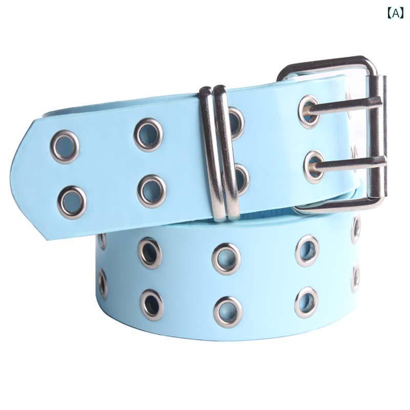 ベルト レザー メンズ 2 列の アイレット スタッズ メンズ レディース向け 汎用性 高さ ピン バックルベルトな 韓国 アウトドア ジーンズ ベルト