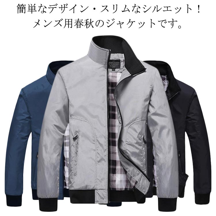 ジャケットメンズ春秋服ブルゾンスタジャンカジュアル防風薄手ライトジャケットジップジャケット裏地付き無地アウターオシャレジャンパー大きいサイズビジネス通勤アウトドアオフィス送料無料