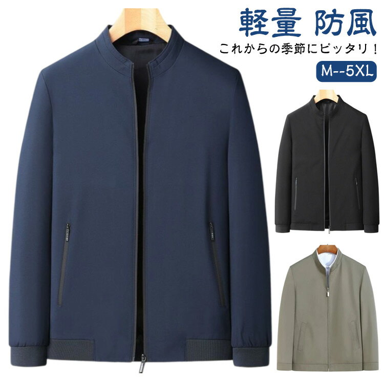 春秋服 メンズ ブルゾン ジャケット 薄手 大きいサイズ 防風 ライトジャケット ジップジャケット 裏地付き オシャレ アウター