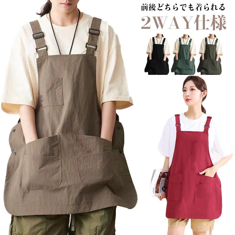 エプロン レディース 無地 ポケット付き 撥水加工 おしゃれ カバーエプロン チュニックエプロン サロペットエプロン ユニフォーム 作業着 料理 カフェ シンプル ワークエプロン ショート丈 ガーデニング アウトドア 男女兼用