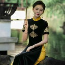 チャイナドレス レディース フェミニン スタイリッシュ 夏 上品 魅惑的 気品 若見え 新中華風 レトロモダン ロング丈 アオザイ風 ワンピース